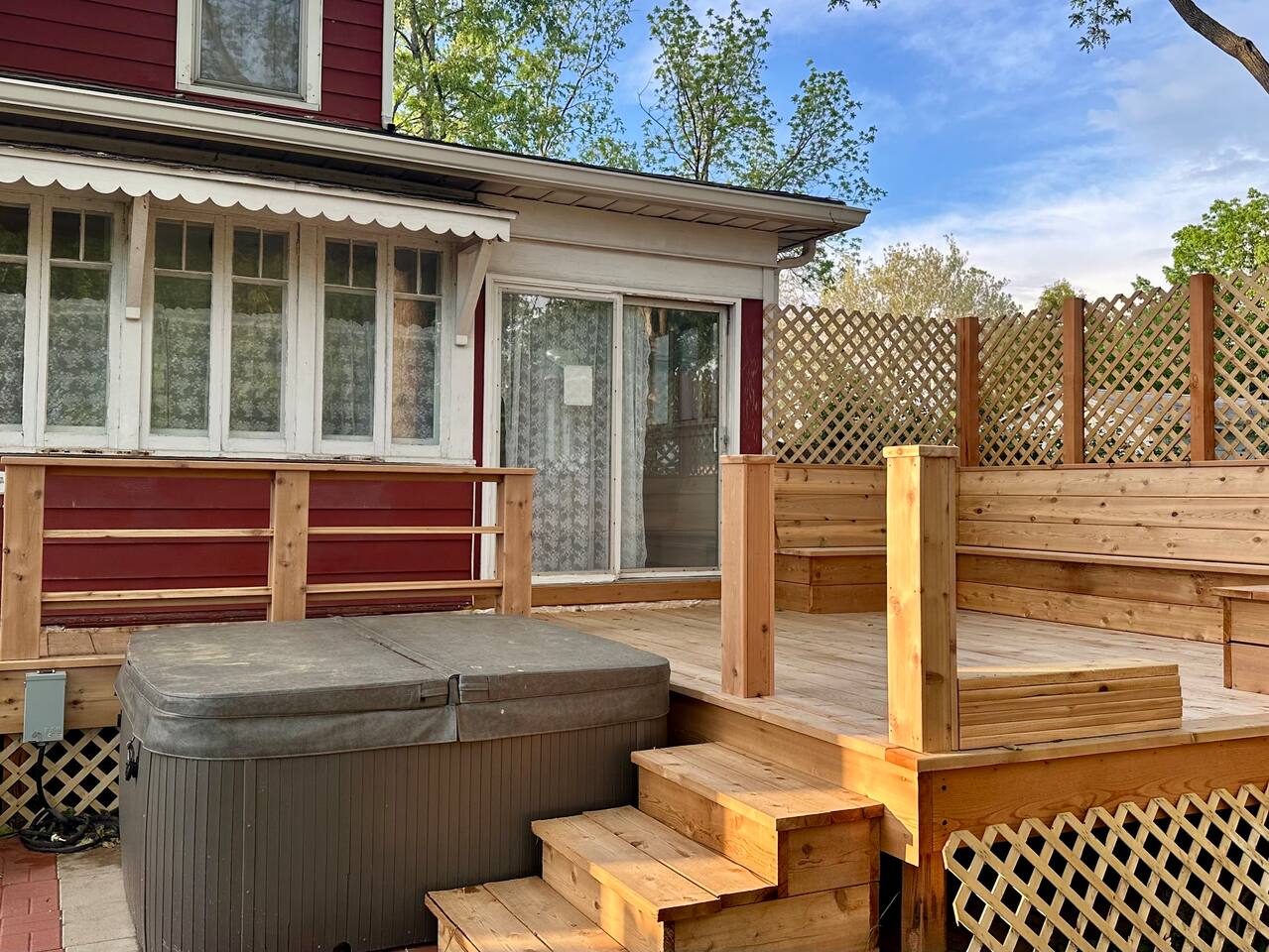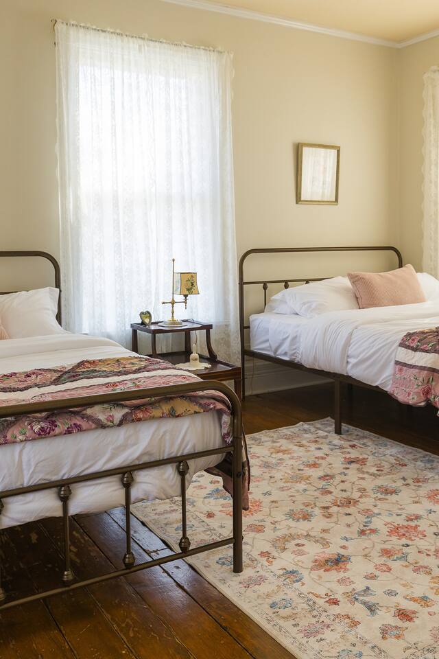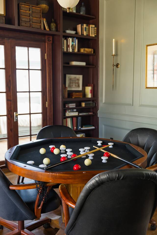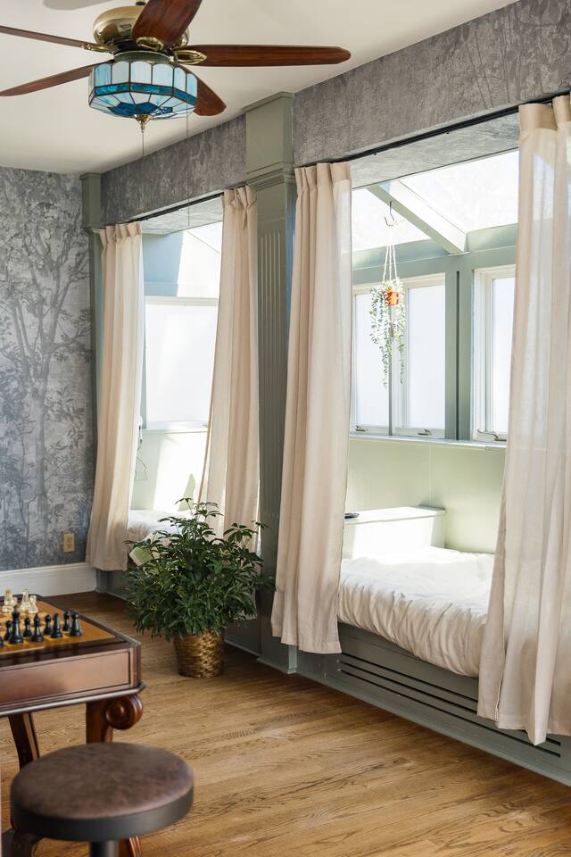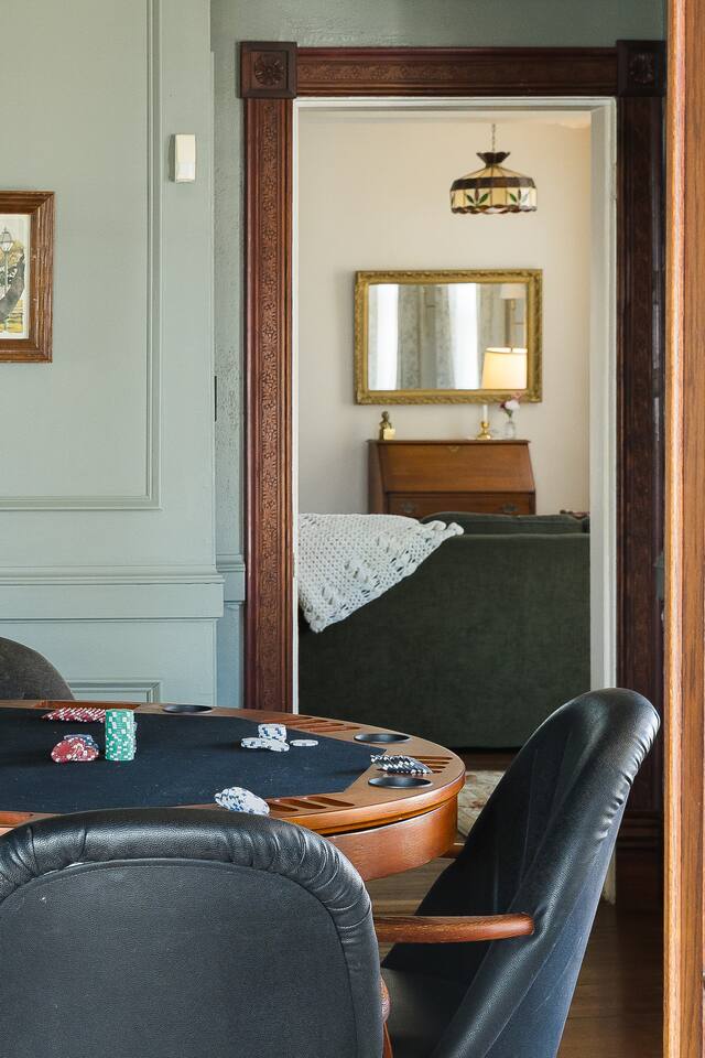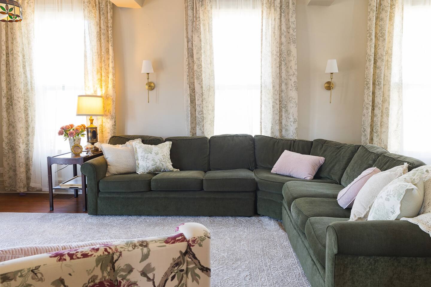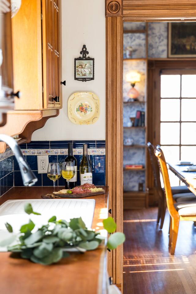 Originally part of a sprawling 40-50-acre estate “out in the country,” the home now combines historic charm with modern conveniences, making it the perfect retreat for families and groups. **Your Space to Relax and Create Memories** Rose Hill is designed for family fun and connection, comfortably accommodating up to 14 guests with: • Three Upstairs Bedrooms & Sunroom: • Master Bedroom: A serene retreat featuring a king-size four-poster bed, plush linens, rose-patterned wallpaper, velvet drapes, and abundant natural light. • Second Bedroom: Two queen beds, a smart TV, and a closet with a stackable washer/dryer. • Bunk Room: Two twin-over-full bunk beds, a built-in playhouse with a rock-climbing wall, floor pillows, a mini retro gaming system, and its own small smart TV—a dream space for kids! • Sunroom: A cozy spot that sleeps two, with a game table perfect for checkers, chess, or backgammon. Cozy, Nostalgic Charm Meets Modern Entertainment • Parlor: A treasure trove of board games, puzzles, books, and a convertible game table for poker and bumper pool. • Living Room: A spacious, inviting space with 12-foot ceilings, a non-working original fireplace, and French doors leading to the side patio. Gather here for movie nights, games, or a cozy read. • Dining Room: Features a large table that seats 8, a historical brass chandelier, and built-in shelving that wraps around original French doors leading to the side patio—a perfect space for shared meals and family conversations. A Kitchen with Heart The galley-style kitchen retains its original tile and is paired with blue-and-cream French toile wallpaper for a timeless feel. Nostalgic touches like antique glassware evoke the warmth of Grandma’s house. The kitchen connects to: • A charming bathroom with a walk-in shower and vintage tile. • A sunroom leading to a deck with built-in seating, custom pergola, HOT TUB, and new privacy fence. Gas BBQ grill also provided. Outdoor Fun & Privacy The outdoor areas at Rose Hill are continually being improved and upgraded to enhance your experience: • Front Porch: A welcoming space to relax and enjoy the neighborhood. • Side Patio: A spacious concrete area accessible from the dining room and living room, perfect for outdoor dining or lounging. • Back Deck: A private space connected to the sunroom, ideal for gatherings and enjoying the fresh air. Leads to Hot Tub with waterfall & color-changing lights! • Fenced-In Yard: Spanning half an acre, this large, private yard provides plenty of room for outdoor games, family fun, or simply soaking in the serene surroundings. Special Touches for Memorable Stays At Rose Hill, every detail is thoughtfully designed—from handmade quilts and candy dishes to velvet textures and floral prints. Whether you’re here for a weekend getaway, a family reunion, or a relaxing retreat, this home is sure to leave you with cherished memories. Book your stay at Rose Hill today and experience the perfect blend of historic charm, modern comforts, and heartfelt hospitality. We can’t wait to welcome you!
