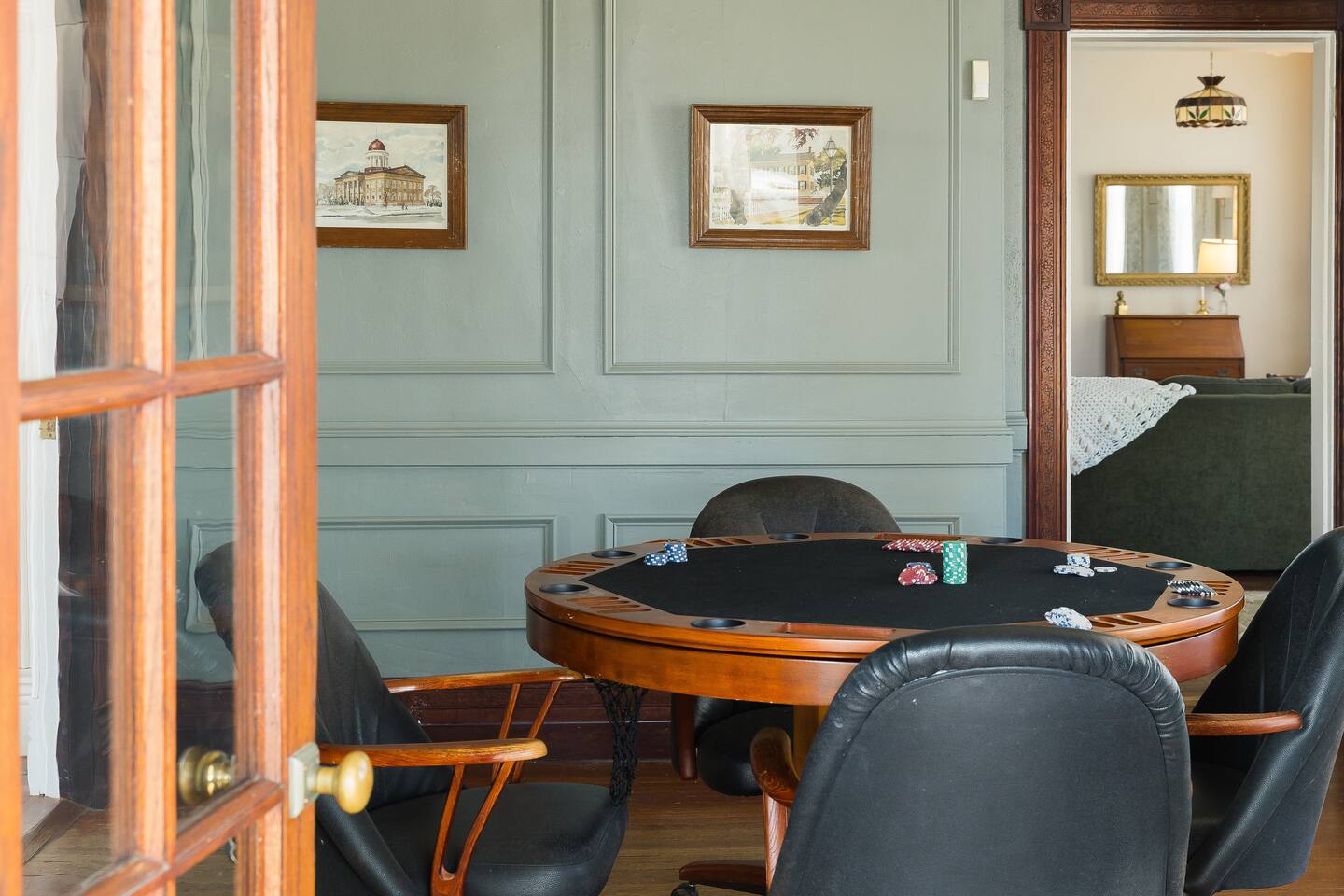 Step into history & charm at Rose Hill, a lovingly restored 1888 home central to many attractions & just 16 blocks west of the Illinois State Capitol. This historic gem offers a unique blend of timeless elegance and the cozy nostalgia of visiting Grandma’s house. Located in a quiet, family-friendly neighborhood, Rose Hill sits on a half-acre lot surrounded by lush greenery. Loaded with amenities that are fun for all ages, it's the perfect retreat for families and groups visiting Springfield.